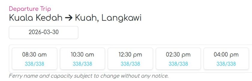 - 到着地: Kuala Perlis Bus Terminal (クアラ・プルリス・バスターミナル)。フェリーターミナルはバスターミナルのすぐ近くにあります。