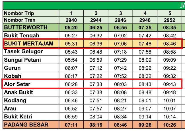 Alor Setar(アロースター)駅に8:43着のKTMで到着後、バスでKuala Kedah Jeti(クアラ・ケダ・フェリーターミナル)へ向かう場合、